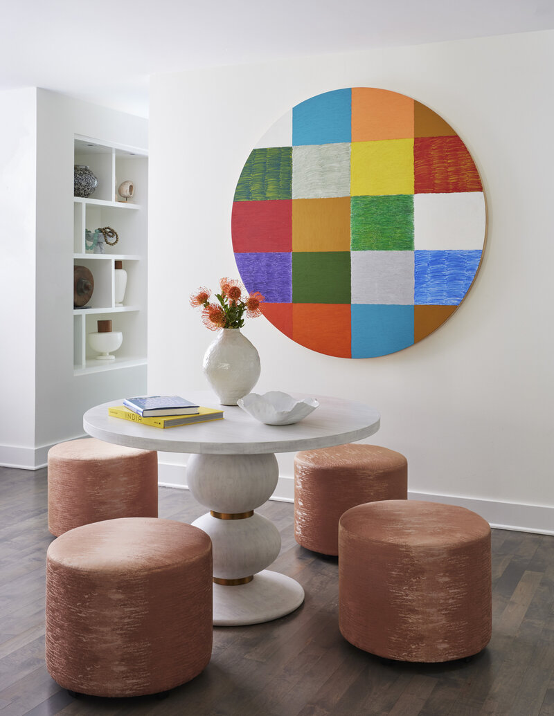 For this Bucktown family, we transformed their city home into a welcoming retreat, perfectly suited for gathering and celebrating with loved ones. Prioritizing seamless entertaining, we created airy, open spaces that connect effortlessly to the outdoors. Throughout the home, bold artwork takes center stage, curated to reflect the homeowners’ love of color and creativity. By keeping furnishings elegant and understated, the design allows their art collection and joyful family moments to truly shine.